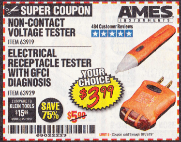 ITC AMES INSTRUMENTS NONCONTACT VOLTAGE TESTER Lot No. 63919 Valid Thru: 1/29/26 - $3.99 Coupon Code: 'n/a' (current price No % off) add to list