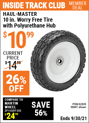 ITC HAUL-MASTER 10 IN. WORRY-FREE TIRE WITH POLYURETHANE HUB Lot No. 96691 Expired: 9/30/21 - $10.99 Coupon Code: 'n/a'
