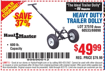 HAUL-MASTER 600 LB. TRAILER DOLLY Lot No. 60533/69898 Expired: 8/27/15 - $49.99 Coupon Code: '90690012'