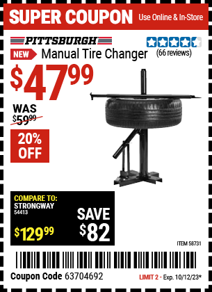 PITTSBURGH MANUAL TIRE CHANGER Lot No. 58731 Expired: 2/23/25 - $49.99 Coupon Code: '75920458'