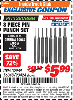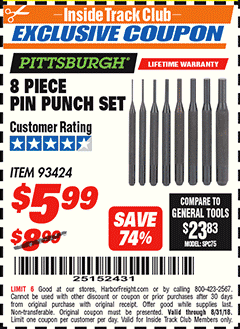 PITTSBURGH PIN PUNCH SET, 8-PIECE Lot No. 93424 Valid Thru: 3/22/26 - $5.99 Coupon Code: '20856137' (current price - 20% = 0) add to list