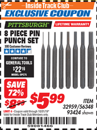 ITC PITTSBURGH PIN PUNCH SET, 8-PIECE Lot No. 93424 Expired: 10/31/19 - $5.99 Coupon Code: '59081466'