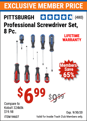 ITC PITTSBURGH SCREWDRIVER SET, 8-PIECE Lot No. 94607 Expired: 9/30/20 - $6.99 Coupon Code: 'n/a'