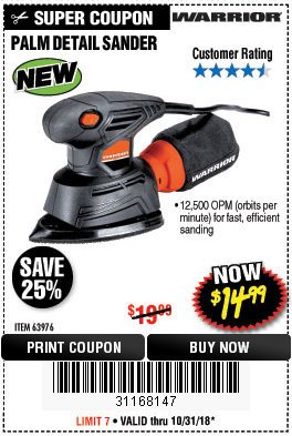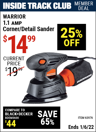 WARRIOR 1.1 AMP CORNER/DETAIL SANDER Lot No. 63976 Expired: 12/31/18 - $14.99 Coupon Code: '35173573'