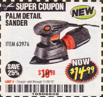WARRIOR 1.1 AMP CORNER/DETAIL SANDER Lot No. 63976 Expired: 11/30/18 - $14.99 Coupon Code: '10506608'